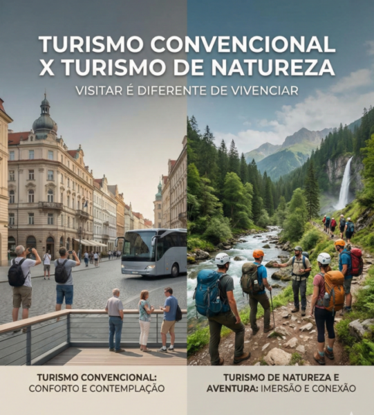 Quando planejamos uma viagem, o objetivo é sempre o lazer e a descoberta. No entanto, existem diferenças importantes entre o Turismo Convencional e o Turismo de Natureza e Aventura. Ambos são incríveis e necessários, mas entregam vivências e exigem preparações distintas.